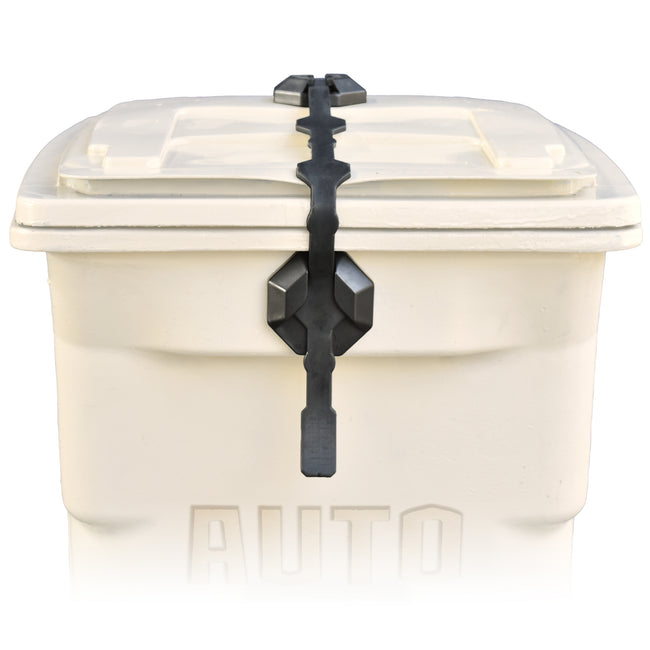 The Strong Strap Stretch Latch is a universal lid lock for outdoor garbage cans. This all-purpose trash can accessory with breakthrough features from Blazer Brand transcends the bleak future of waste management.