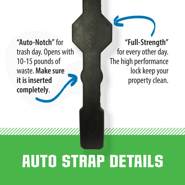 Strong Strap keeps trash where it belongs—in the bin. Defend your cart against pests, violent winds, overflow, and other leading factors causing your would-be waste to become litter.